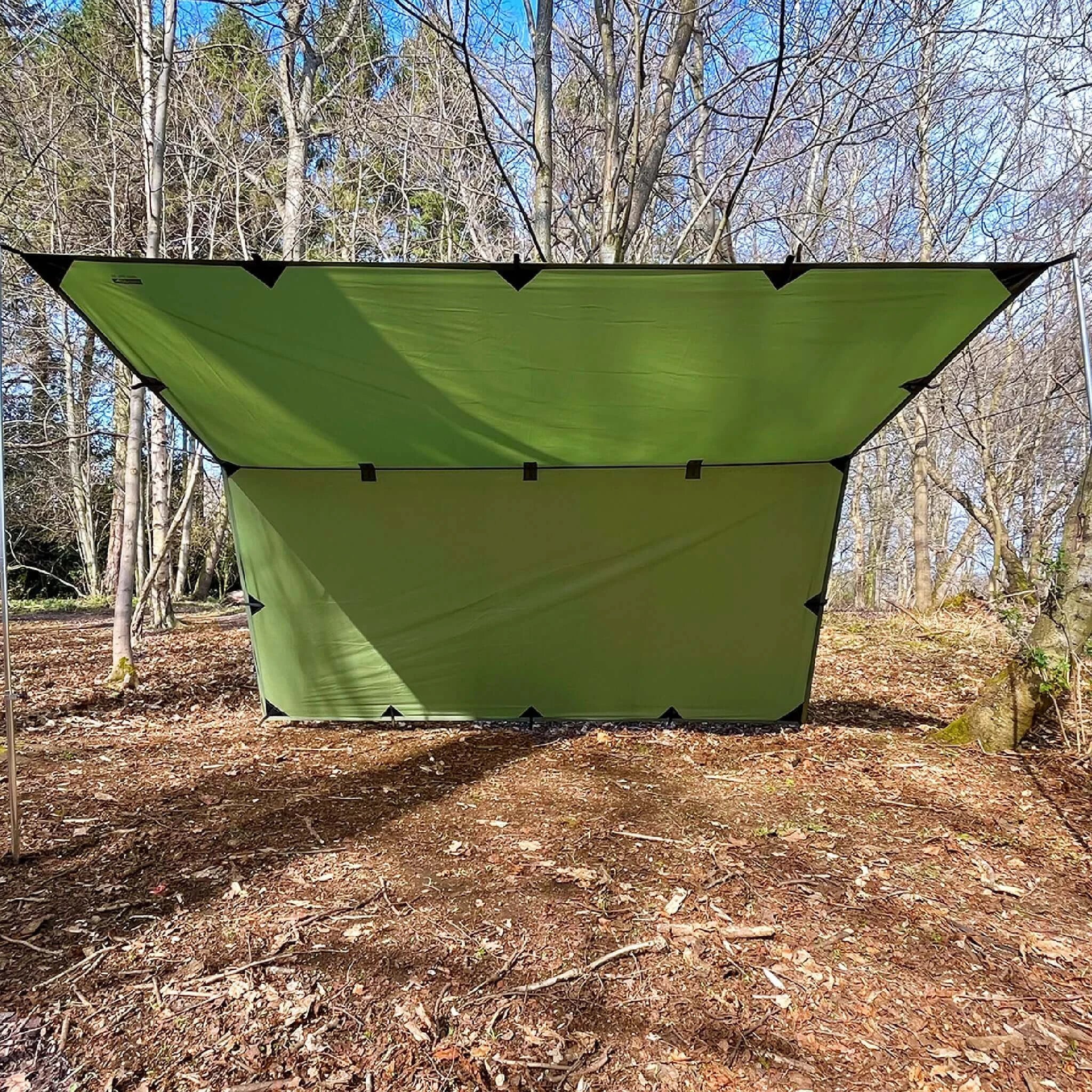 The UV50 Plus tarp suits summer camping in UK when you want shade from intense sun during heatwaves or extended sunny periods. The UV protection prevents the tarp from degrading as quickly under constant sun exposure compared to standard tarps, extending the tarp's lifespan when used regularly in sunny conditions.