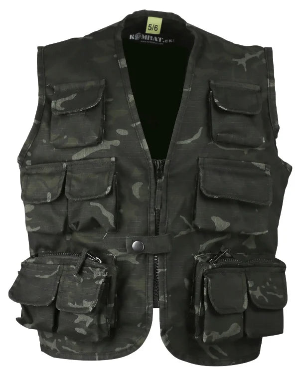 This Kombat UK kids tactical vest provides authentic military styling for children's dress-up play, outdoor adventures, and imaginative activities. Designed for ages 3-13 years with practical storage solutions.
